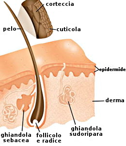 - Epidermide con pigmento e capelli.