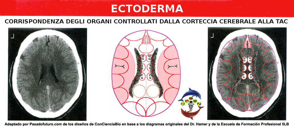 Tutti gli organi e tessuti dell'Ectoderma sono controllati dalla Corteccia Cerebrale (la parte più recente del cervello). Questa a sua volta si divide in: