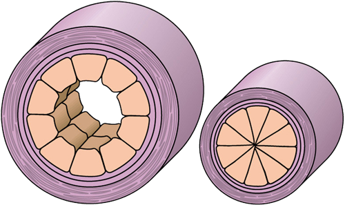 La muscolatura lisa (radiale), controllata dal PaleoEncefalo, è nella parte interna dello sfintere ed è involontaria, automatica. Si apre per facilitare l'uscita, ma non in base alla nostra volontà, ma in base ad un ordine cerebrale. Ad esempio: si apre lo sfintere della vescica quando è molto piena, oppure lo sfintere anale quando si deve evacuare.