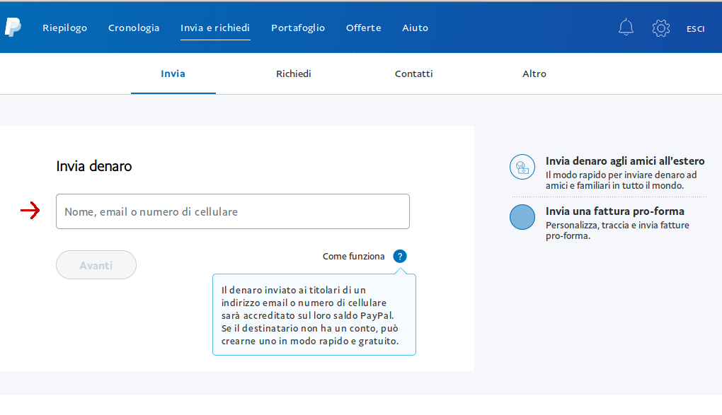 - Nella schermata successiva c'è un campo dove inserire la mail del destinatario: