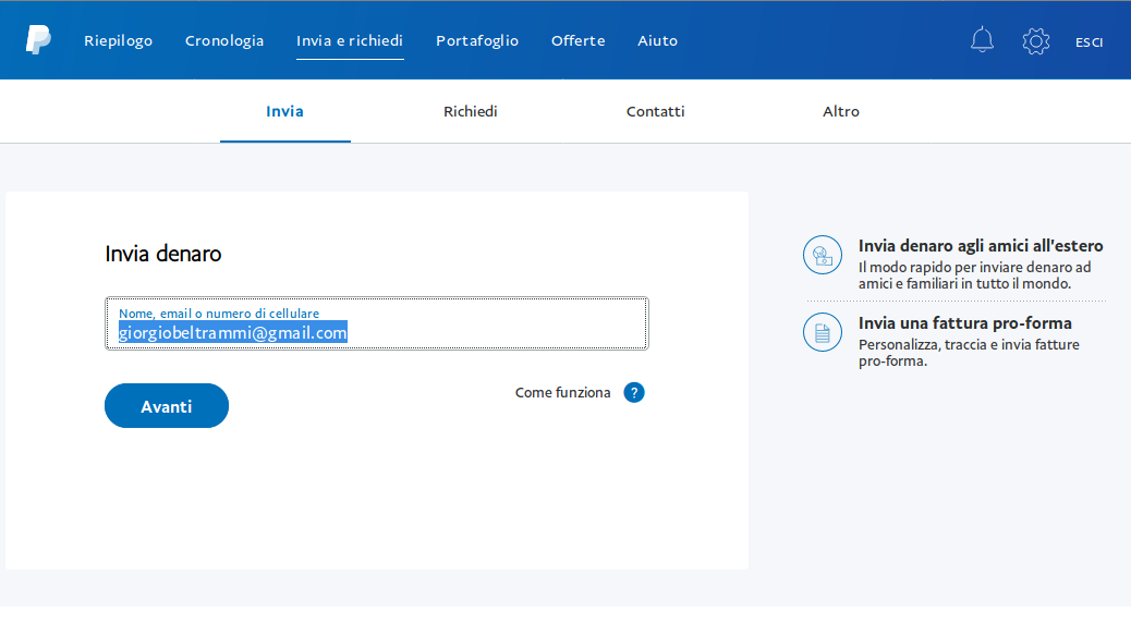 - Inserisci il mio indirizzo (giorgiobeltrammi@gmail.com) e clicca su "Avanti"