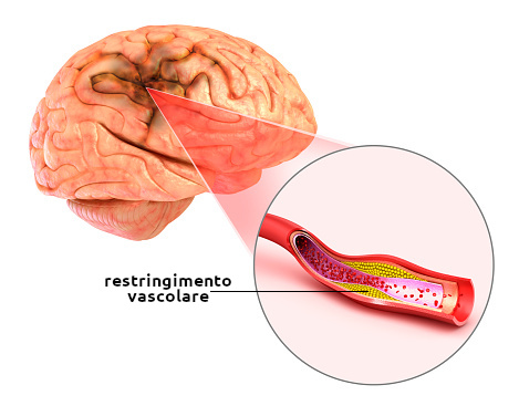 - Ictus ischemico o infarto cerebrale: Una brusca ischemia (diminuzione importante del flusso sanguigno) nel cervello;