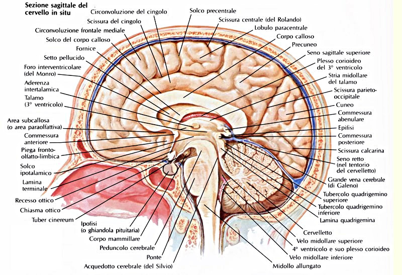 Il cervello, sul suo asse verticale, si divide in: