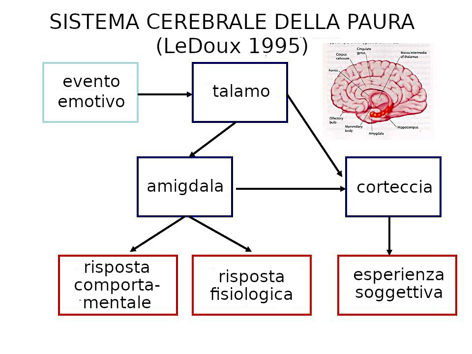 Il modo fondamentale per apprendere la paura è la connessione del talamo con l'amigdala. È interessante notare che le connessioni tra il talamo e la corteccia sono attualmente molto più importanti che negli animali primitivi, da cui si deduce che le connessioni tra il talamo e l'amigdala sono un retaggio evolutivo. Sapendo che questa vestigia è stata preservata intatta per milioni di anni, dobbiamo comprendere l'immensa utilità che l'apprendimento emotivo ha avuto nella vita di tutti i tempi, compresa la nostra.