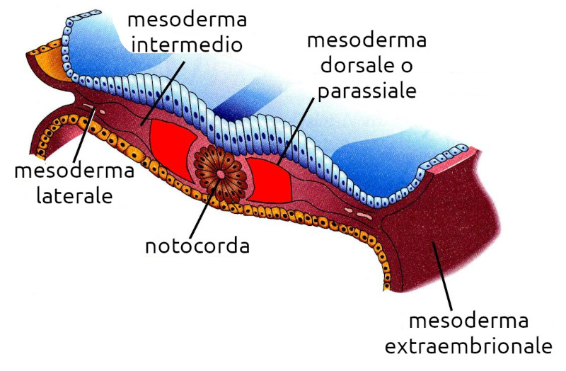 Ecco allora l'avvio di una nuova radice generatrice di tessuti differenti non solo nell'architettura, ma nella stessa finalità. Nasce quindi il foglietto mesodermico che all'epoca probabilmente avvolgeva quello endodermico. In esso si riconoscono due sottoradici fondamentali: il mesoderma laterale o arcaico e quello dorsale/parassiale o recente.