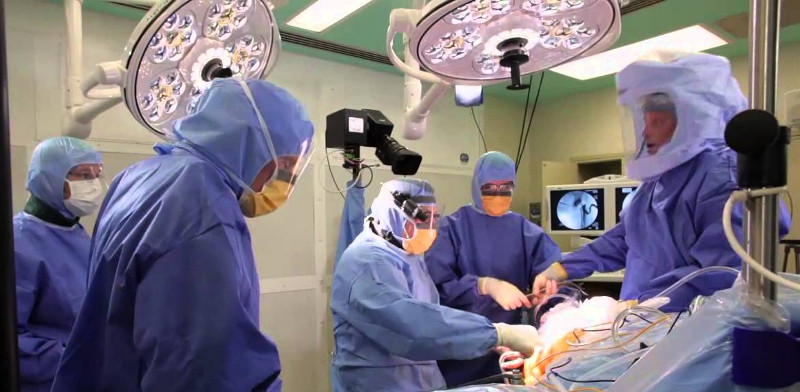- preparazione prechirurgica (denudamento, reperimento di grossa via venosa, inserimento di catetere vescicale)