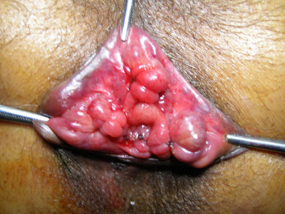 Quelle di primo grado non protrudono all'esterno. Quelle di secondo grado escono all'esterno solo durante la defecazione.