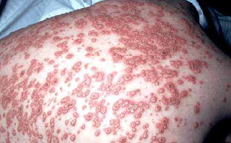Rash cutaneo da infezione sistemica. Molte malattie infantili, ad esempio Morbillo o Scarlattina, hanno un caratteristico esantema.