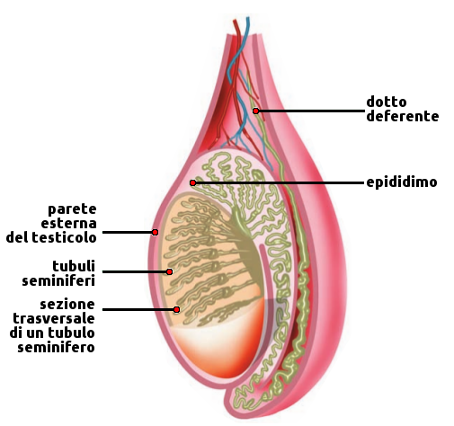 All'esterno del testicolo sono collocati i dotti per veicolare gli spermatozoi: dotto efferente ed epididimo. I dotti efferenti conducono gli spermatozoi dai tubuli seminiferi all'epididimo.