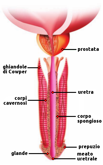 È l'organo copulatorio dell'uomo, la cui funzione è portare il seme all'apparato genitale femminile durante il coito. Si colloca in cima alla borsa scrotale, davanti alla sinfisi pubica.