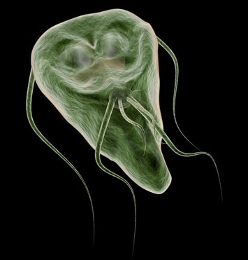 Infestazione del parassita intestinale Giardia intestinalis nell'intestino tenue.
