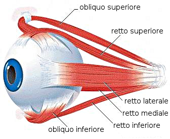 Strabismo. L'occhio ha quattro muscoli, con questi quattro muscoli si eseguono tutti i movimenti dell'occhio. Il disturbo più frequente di questa funzione è lo Strabismo. Consiste nella deviazione dell'allineamento di un occhio in relazione all'altro. I muscoli laterali sono quelli colpiti. Se è colpito il muscolo interno dell'occhio e quello laterale si rilassa, l'occhio punta verso la narice. In questo caso abbiamo lo strabismo convergente. Nello strabismo divergente invece, un occhio punta verso la destra e l'altro verso sinistra. In entrambe i casi si tratta di problemi muscolari e la parola chiave del muscolo è Impotenza.