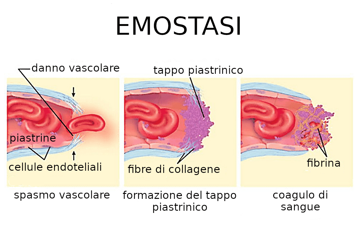 Per emostasi si intende l'impedimento o l'arresto del sanguinamento. Ogni qualvolta un vaso sanguigno viene leso o reciso, l'emostasi viene messa in atto per mezzo di alcuni meccanismi che comprendono:- lo spasmo vascolare;