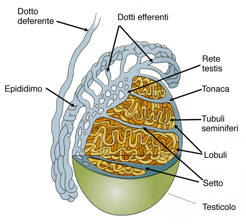 I testicoli sono sotto l'influenza anche di un secondo ormone ipofisario, l'ormone follicolo stimolante (FSH), che agisce sulle cellule del Sertoli dei testicoli e, attraverso esse, regola la produzione di spermatozoi. Tra i fattori coinvolti nel controllo della sintesi dell'FSH vi è un ormone proteico, chiamato inibina, che è secreto dalle stesse cellule del Sertoli e ha il compito di inibire la produzione di FSH, anch'esso con un meccanismo a feedback negativo. Infatti, se il livello di testosterone e di spermatozoi prodotti è alto, entra in azione l'inibina che, abbassando il livello ematico di FSH, fa diminuire la sintesi di testosterone nei testicoli; se, invece, il livello di testosterone è basso, non viene prodotta inibina e aumenta la secrezione di FSH, con conseguente rilascio di testosterone.