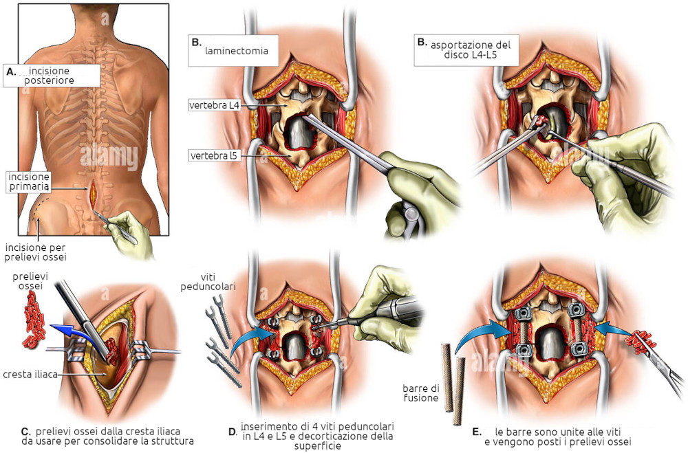Infine c'è la chirurgia con metodiche miniinvasive (decompressione transcutanea a carico del legamento giallo) e con metodiche molto invasive come la laminectomia totale. Queste procedure indeboliscono di fatto la struttura lombare o cervicale e ci possono essere danni neurologici permanenti.