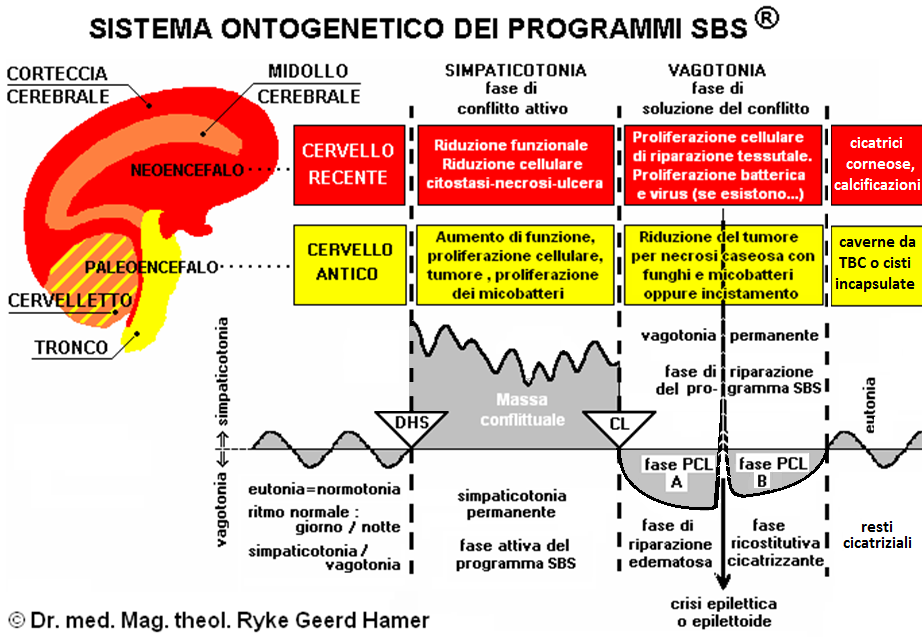Da quanto hai appena letto, puoi capire quanto può essere "naturale" intuire come vanno le cose. Se la diagnosi istologica è già fatta, basta ricondurre l'esito dell'esame al foglietto embrionale di appartenenza, che indicherà quale area del cervello presenta il FH e da qui capire che tipo di conflitto vive o ha vissuto la persona e se è ancora attivo o in fase di risoluzione.