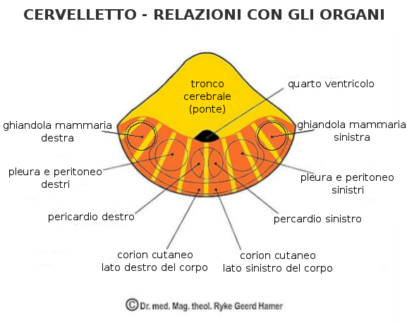 In questa tabella è presente un estratto del poster sulle relazioni psiche-cervello-organo del Dottor Hamer. In questo documento si tratta del solo foglietto mesodermico antico.