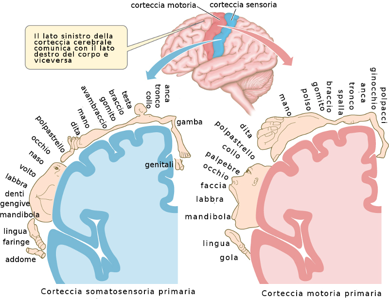 Non solo, ma alla percezione del tocco ed alla sua valutazione di pertinenza, si collega un immediata reazione congrua ad opera della corteccia vicina, quella motoria e non è un caso biologico se le due aree sono a strettissimo contatto. La sua stimolazione potrà magari indicare ai muscoli facciali e non solo, di rilassarsi o di contrarsi, ad esempio.
