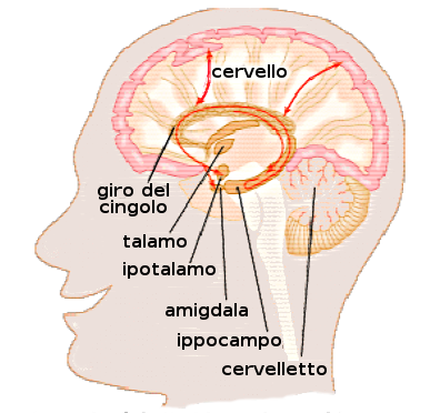 Mentre le strutture di questa parte del cervello altamente sviluppata si interconnettono, la ricerca ha mostrato che l'Amigdala, una piccola struttura a forma di mandorla collocata nella parte profonda del cervello, e l'Ippocampo sembrano essere le aree principali coinvolte nelle emozioni. L'amigdala si connette all'ippocampo così come con il nucleo mediale dorsale del Talamo. Queste connessioni giocano un importante ruolo nella mediazione e nel controllo delle maggiori attività come l'amicizia, l'amore e l'affettività. L'Ipotalamo, in particolare la sua parte mediana, è stato identificato come il maggior contribuente alla produzione della risata incontrollata.