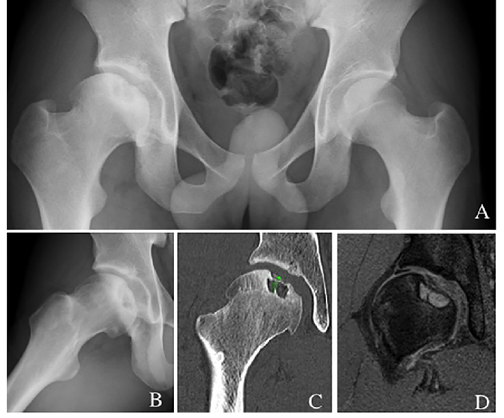 Distacco dello strato cartilagineo dell'articolazione dell'anca. Si deve alla interruzione del flusso ematico alla testa del femore.