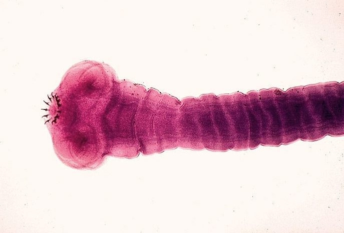L’uomo alberga la forma adulta del verme adesa alla parete intestinale e può emettere con le feci proglottidi o uova.